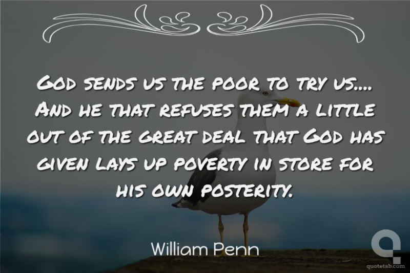 God sends us the poor to try us.... And he that refuses them a little out of the great deal that God has given lays up poverty in store for his own posterity.