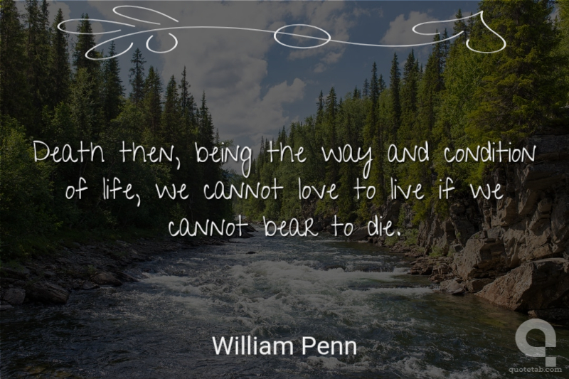 Death then, being the way and condition of life, we cannot love to live if we cannot bear to die.