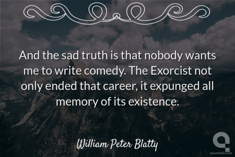 And the sad truth is that nobody wants me to write comedy. The Exorcist not only ended that career, it expunged all memory of its existence.