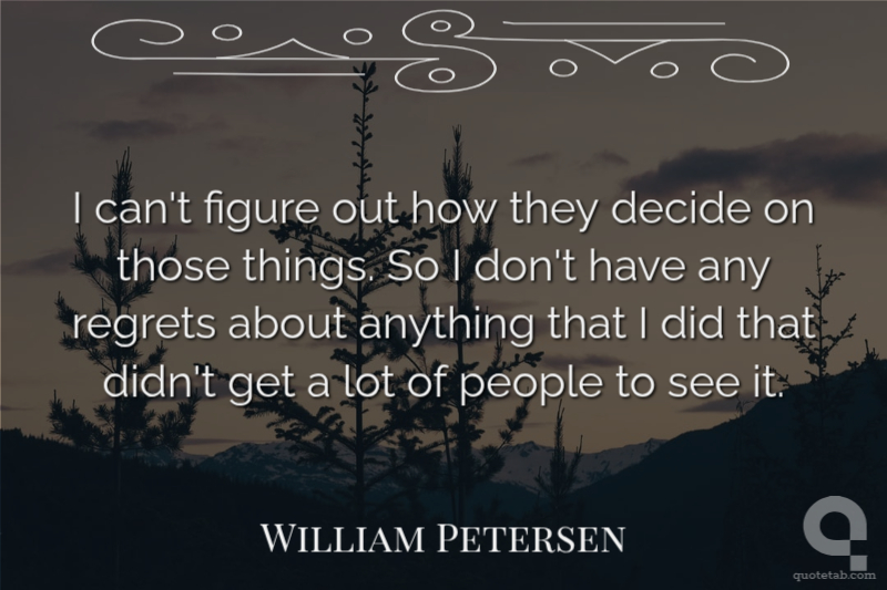 I can't figure out how they decide on those things. So I don't have any regrets about anything that I did that didn't get a lot of people to see it.