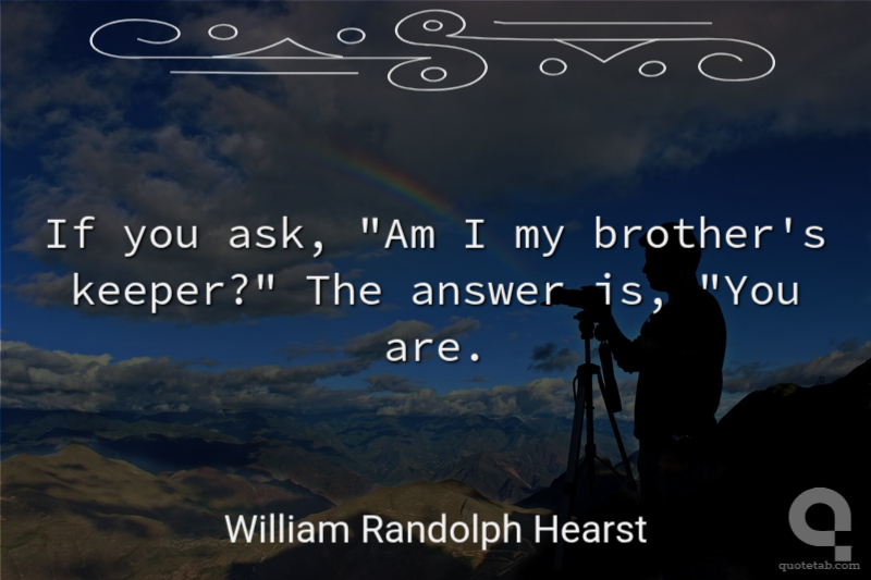 If you ask, "Am I my brother's keeper?" The answer is, "You are.