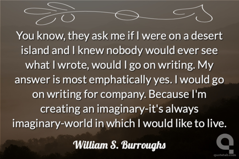 You know, they ask me if I were on a desert island and I knew nobody would ever see what I wrote, would I go on writing. My answer is most emphatically yes. I would go on writing for company. Because I'm creating an imaginary-it's always imaginary-world in which I would like to live.