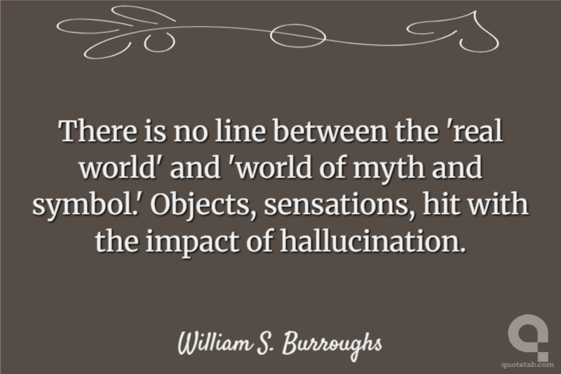 There is no line between the 'real world' and 'world of myth and symbol.' Objects, sensations, hit with the impact of hallucination.
