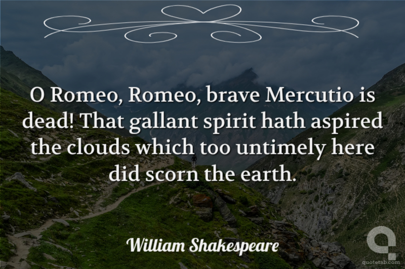 O Romeo, Romeo, brave Mercutio is dead! That gallant spirit hath aspired the clouds which too untimely here did scorn the earth.