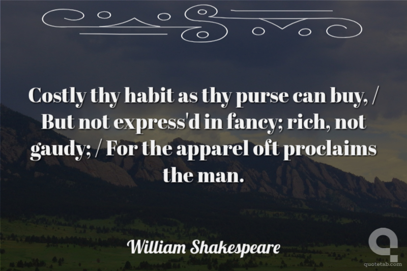 Costly thy habit as thy purse can buy, / But not express'd in fancy; rich, not gaudy; / For the apparel oft proclaims the man.