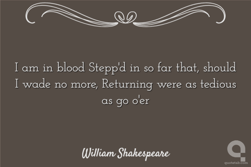 I am in blood Stepp'd in so far that, should I wade no more, Returning were as tedious as go o'er