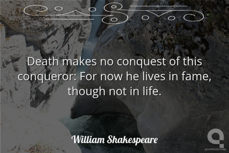 Death makes no conquest of this conqueror: For now he lives in fame, though not in life.