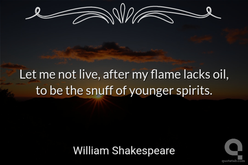 Let me not live, after my flame lacks oil, to be the snuff of younger spirits.