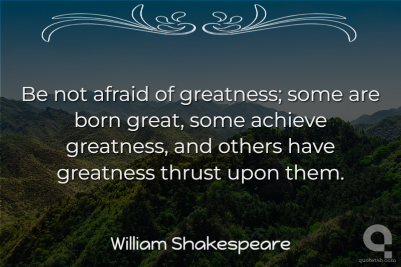 Be not afraid of greatness; some are born great, some achieve greatness, and others have greatness thrust upon them.