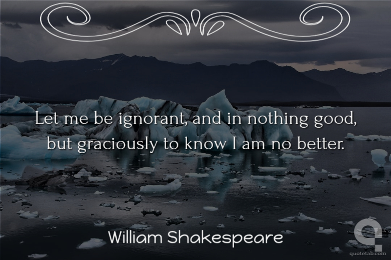 Let me be ignorant, and in nothing good, but graciously to know I am no better.