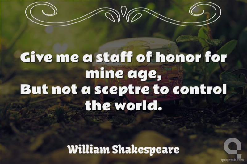 Give me a staff of honor for mine age, But not a sceptre to control the world.