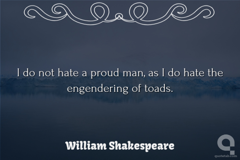 He that is proud eats up himself; pride in his glass, his trumpet, his chronicle; and whatever praises itself but in the deed, devours the deed in the praise