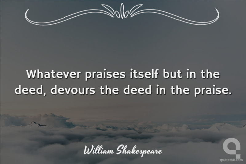 Whatever praises itself but in the deed, devours the deed in the praise.