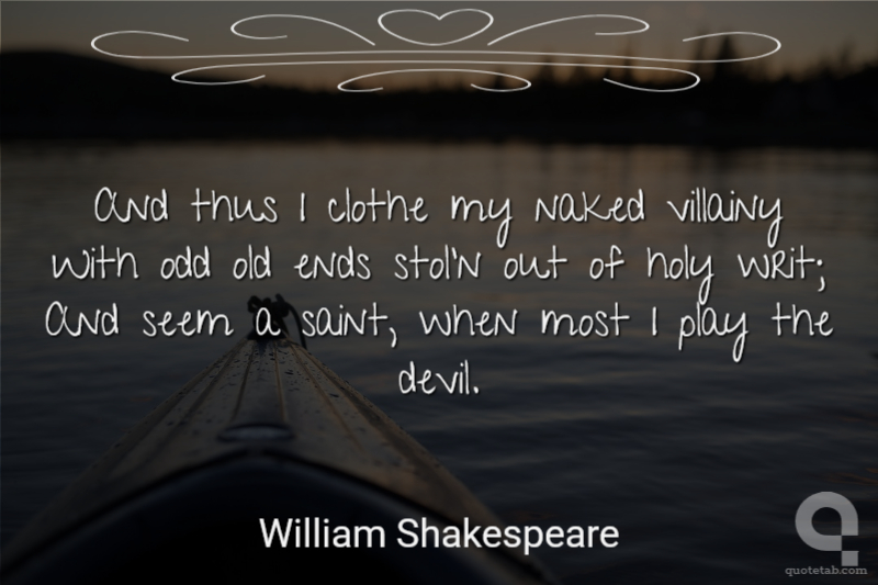 And thus I clothe my naked villainy With odd old ends stol'n out of holy writ; And seem a saint, when most I play the devil.