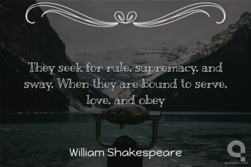 They seek for rule, supremacy, and sway, When they are bound to serve, love, and obey