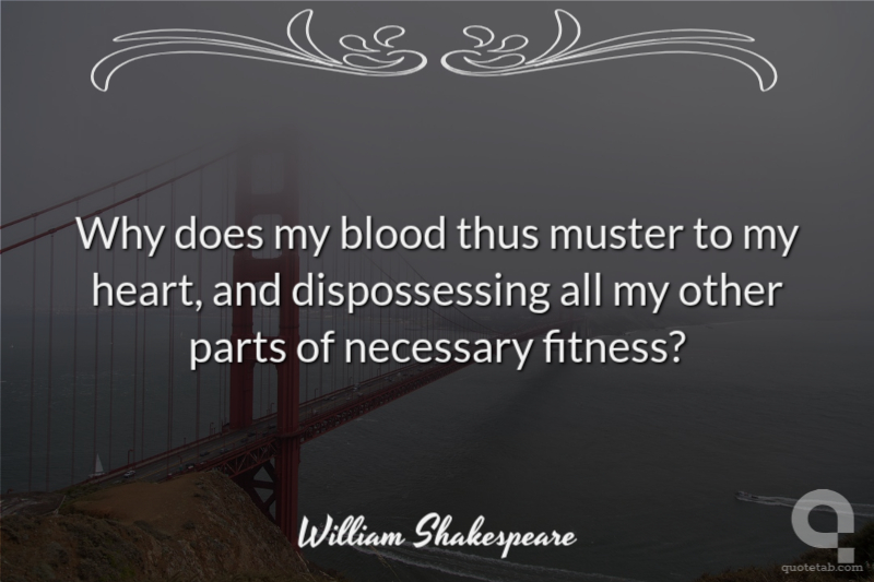 Why does my blood thus muster to my heart,Making both it unable for itself,And dispossessing all my other partsOf necessary fitness?