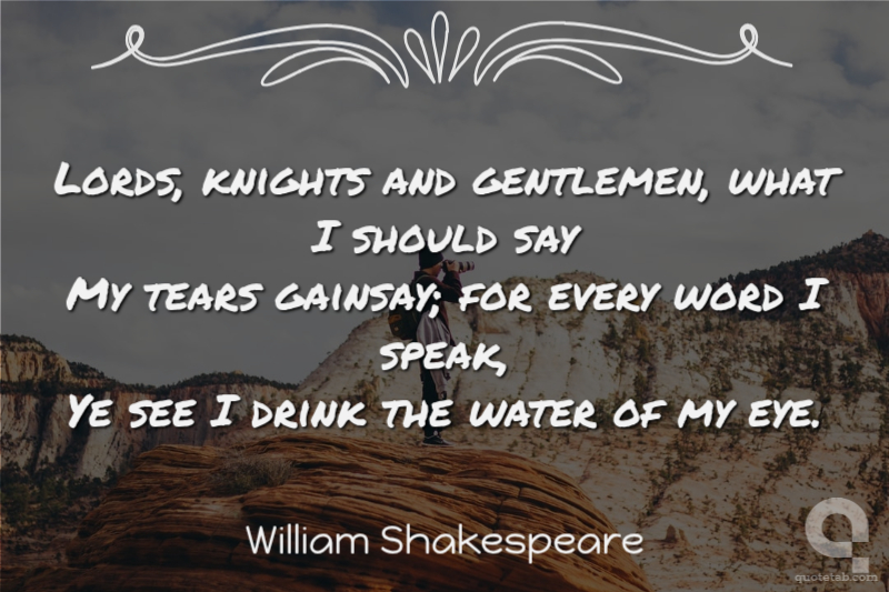 Lords, knights and gentlemen, what I should say My tears gainsay; for every word I speak, Ye see I drink the water of my eye.