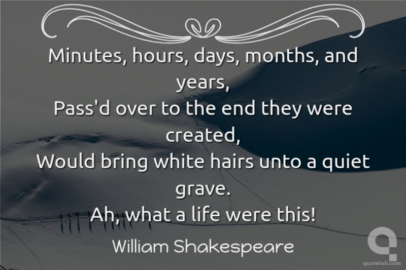 Minutes, hours, days, months, and years, Pass'd over to the end they were created, Would bring white hairs unto a quiet grave. Ah, what a life were this!