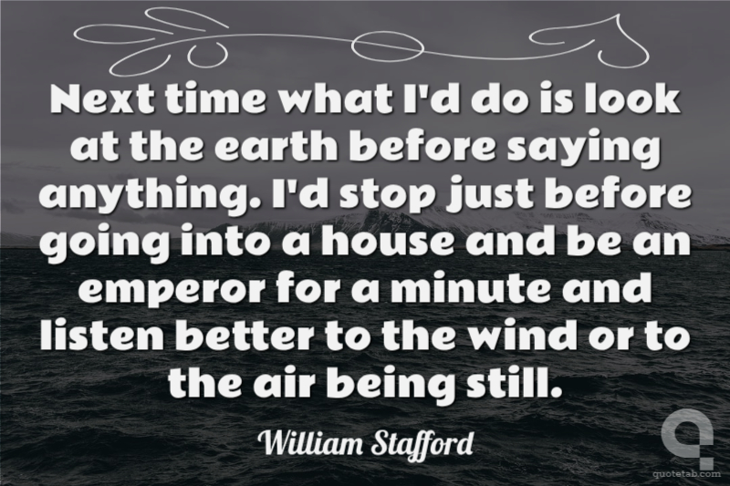 Next time what I'd do is look atthe earth before saying anything. I'd stopjust before going into a houseand be an emperor for a minuteand listen better to the windor to the air being still.
