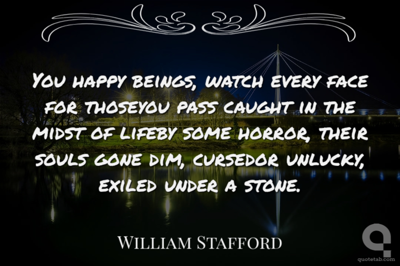 You happy beings, watch every face for those you pass caught in the midst of life by some horror, their souls gone dim, cursed or unlucky, exiled under a stone.