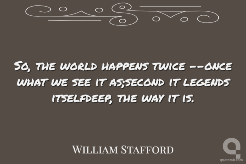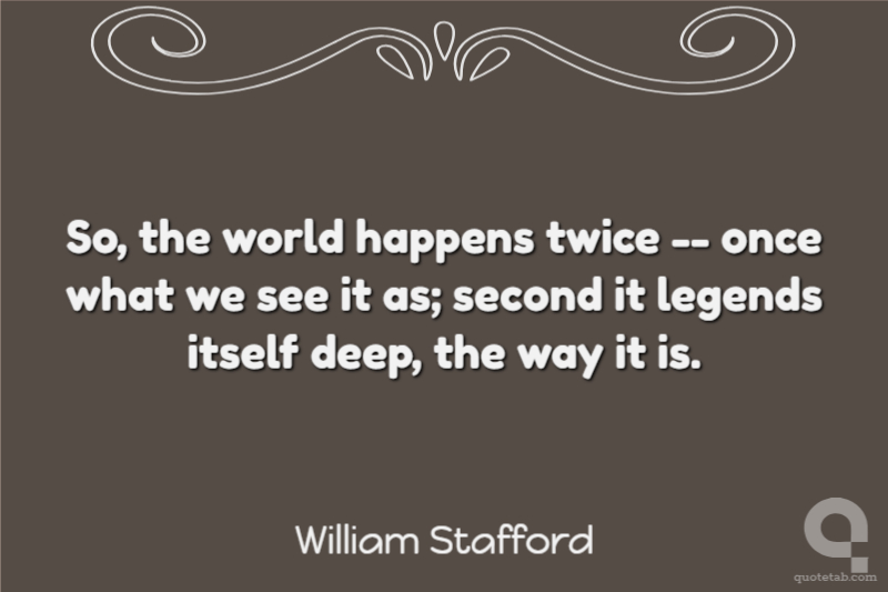So, the world happens twice -- once what we see it as; second it legends itself deep, the way it is.