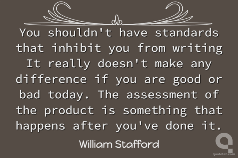 You shouldn't have standards that inhibit you from writing It really doesn't make any difference if you are good or bad today. The assessment of the product is something that happens after you've done it.