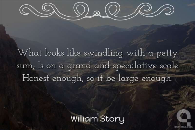 What looks like swindling with a petty sum,Is on a grand and speculative scaleHonest enough, so it be large enough.