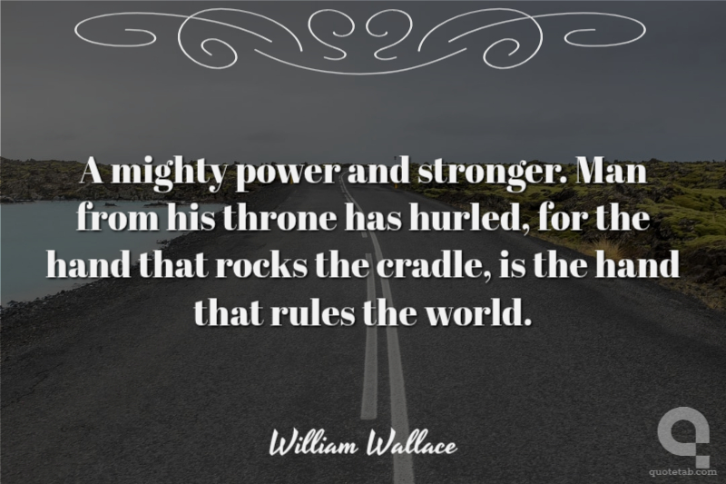 A mighty power and stronger. Man from his throne has hurled, for the hand that rocks the cradle, is the hand that rules the world.