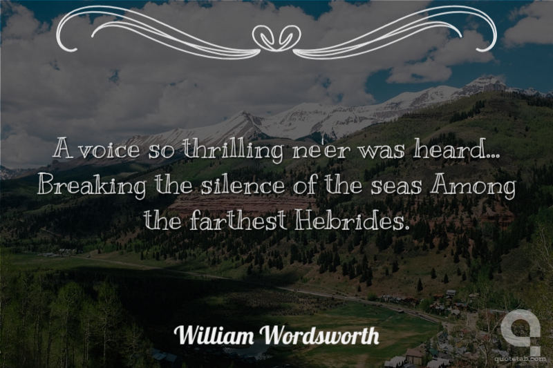 A voice so thrilling ne'er was heard... Breaking the silence of the seas Among the farthest Hebrides.