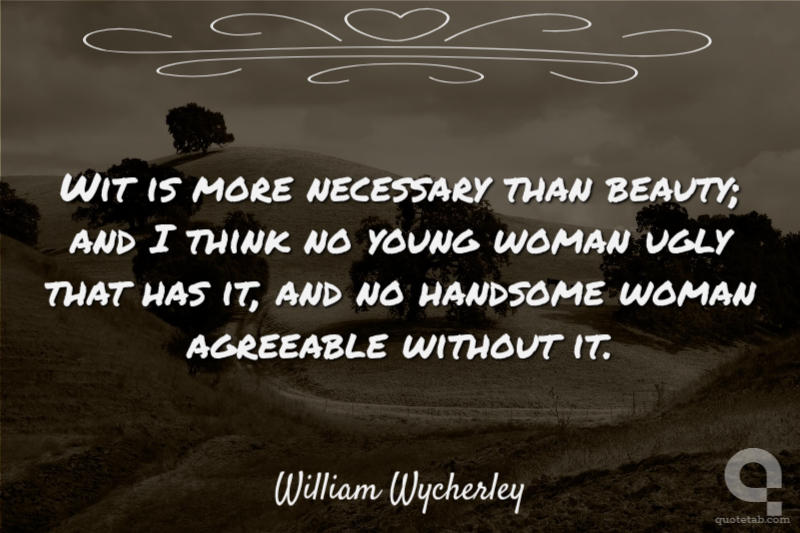 Wit is more necessary than beauty; and I think no young woman ugly that has it, and no handsome woman agreeable without it.