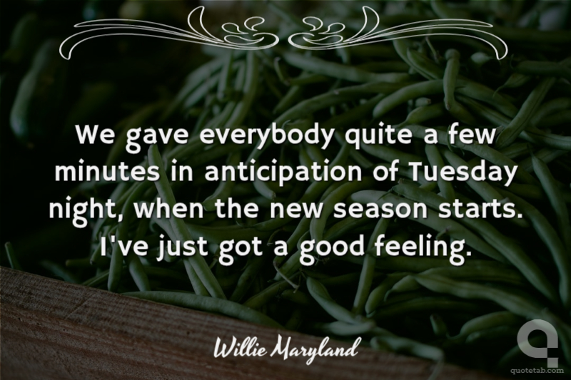 We gave everybody quite a few minutes in anticipation of Tuesday night, when the new season starts. I've just got a good feeling.