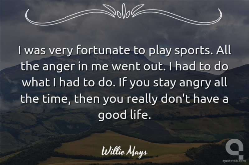 I was very fortunate to play sports. All the anger in me went out. I had to do what I had to do. If you stay angry all the time, then you really don't have a good life.