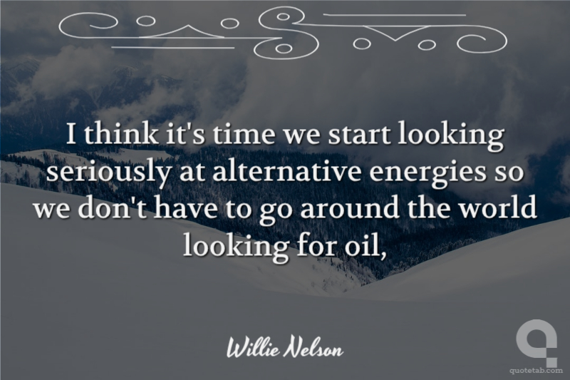 I think it's time we start looking seriously at alternative energies so we don't have to go around the world looking for oil,