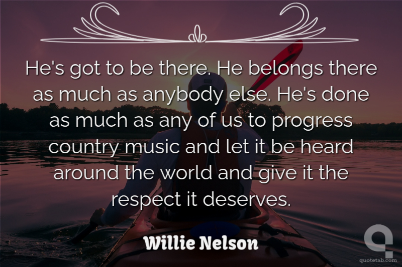 He's got to be there. He belongs there as much as anybody else. He's done as much as any of us to progress country music and let it be heard around the world and give it the respect it deserves.