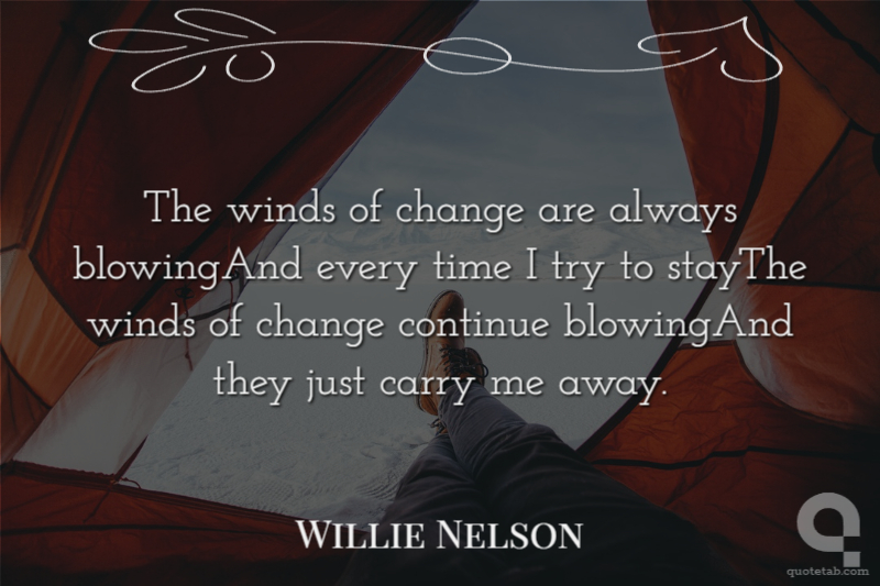 The winds of change are always blowingAnd every time I try to stayThe winds of change continue blowingAnd they just carry me away.