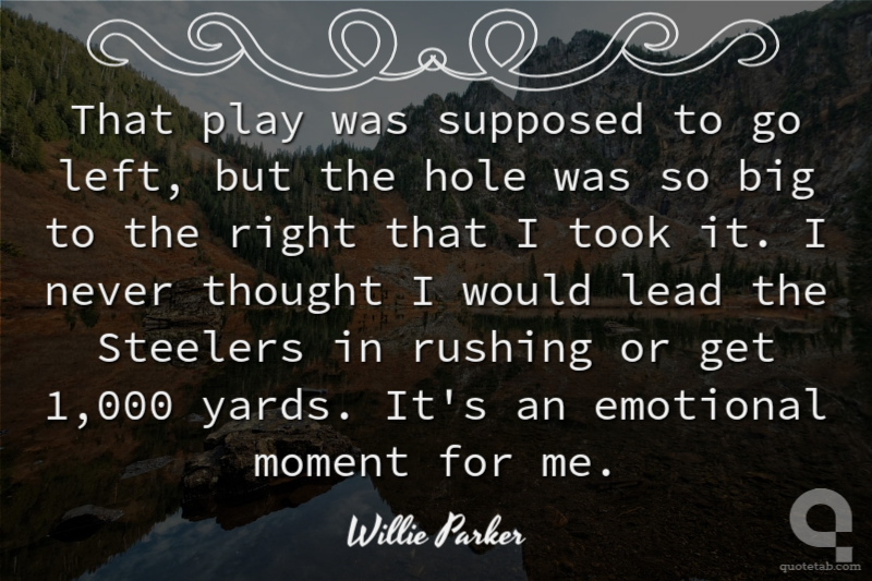 That play was supposed to go left, but the hole was so big to the right that I took it. I never thought I would lead the Steelers in rushing or get 1,000 yards. It's an emotional moment for me.