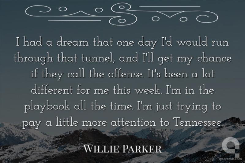I had a dream that one day I'd would run through that tunnel, and I'll get my chance if they call the offense. It's been a lot different for me this week. I'm in the playbook all the time. I'm just trying to pay a little more attention to Tennessee.