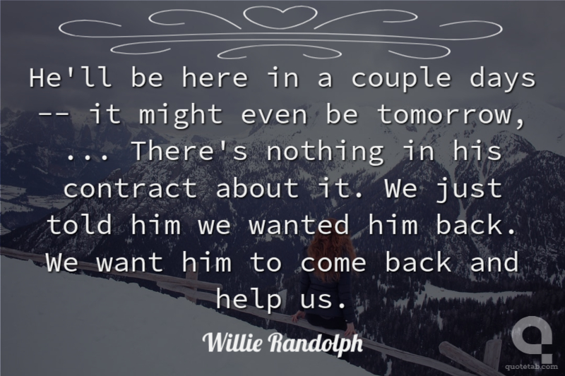 He'll be here in a couple days -- it might even be tomorrow, ... There's nothing in his contract about it. We just told him we wanted him back. We want him to come back and help us.