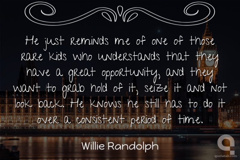 He just reminds me of one of those rare kids who understands that they have a great opportunity, and they want to grab hold of it, seize it and not look back. He knows he still has to do it over a consistent period of time.