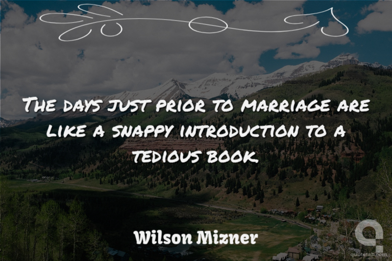 The days just prior to marriage are like a snappy introduction to a tedious book.