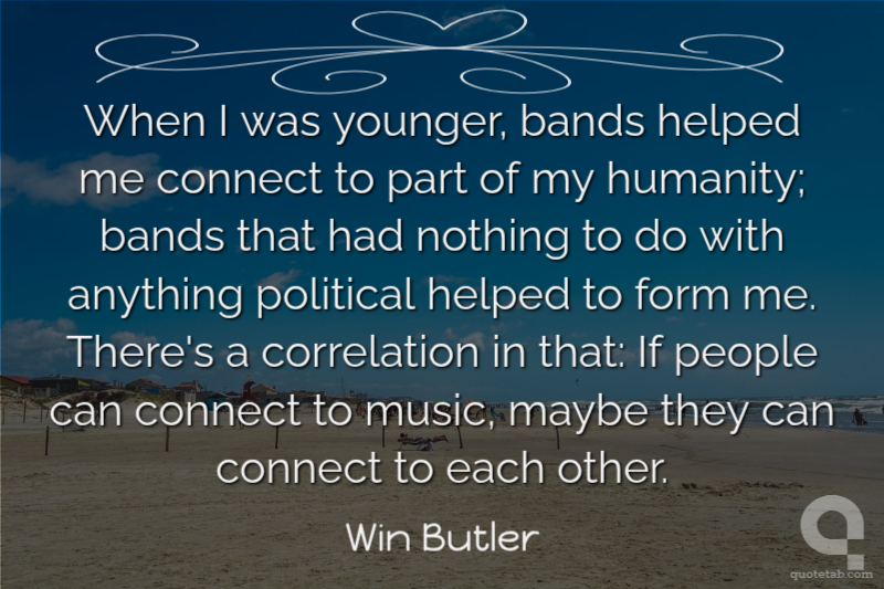 When I was younger, bands helped me connect to part of my humanity; bands that had nothing to do with anything political helped to form me. There's a correlation in that: If people can connect to music, maybe they can connect to each other.