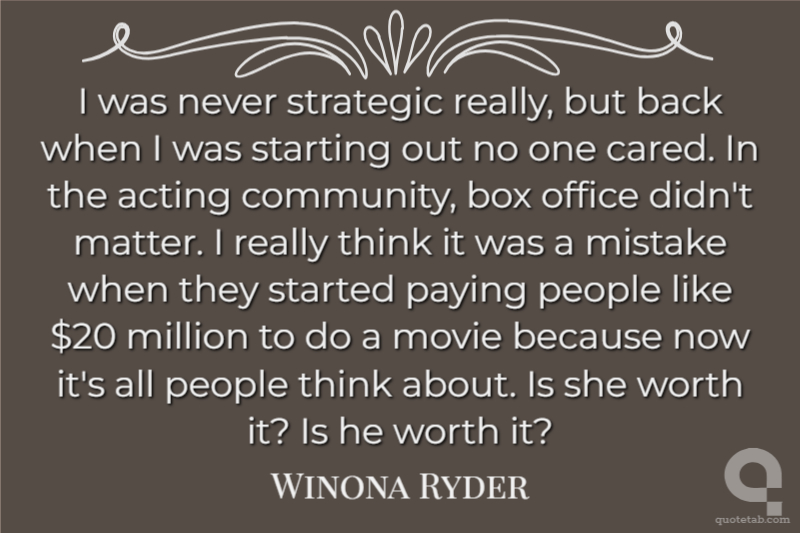 I was never strategic really, but back when I was starting out no one cared. In the acting community, box office didn't matter. I really think it was a mistake when they started paying people like $20 million to do a movie because now it's all people think about. Is she worth it? Is he worth it?