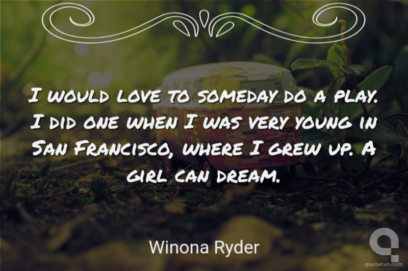 I would love to someday do a play. I did one when I was very young in San Francisco, where I grew up. A girl can dream.