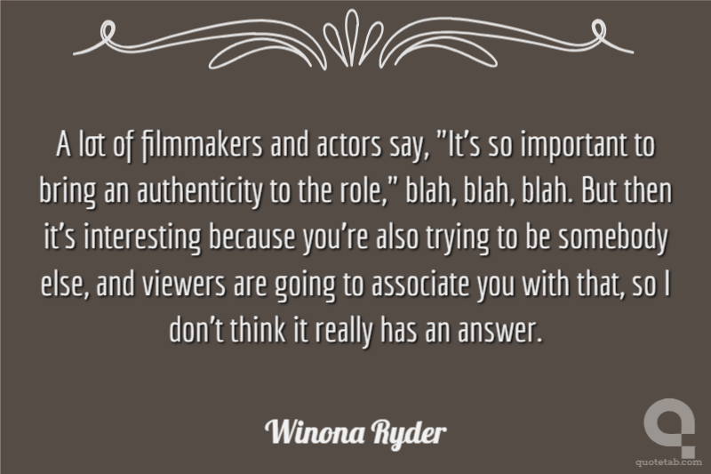 A lot of filmmakers and actors say, "It's so important to bring an authenticity to the role," blah, blah, blah. But then it's interesting because you're also trying to be somebody else, and viewers are going to associate you with that, so I don't think it really has an answer.