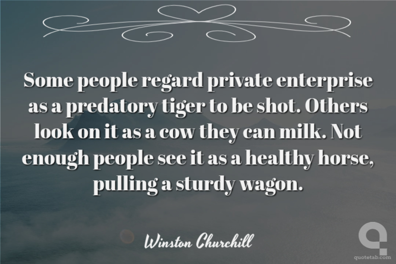 Some people regard private enterprise as a predatory tiger to be shot. Others look on it as a cow they can milk. Not enough people see it as a healthy horse, pulling a sturdy wagon.