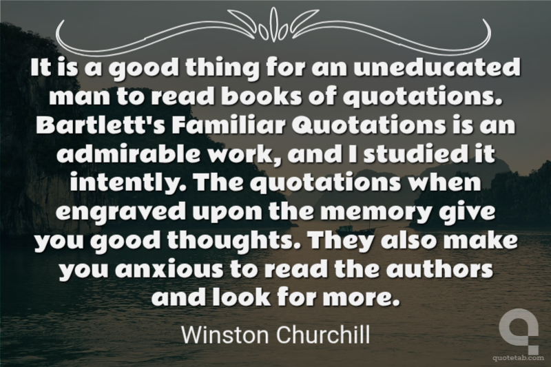 It is a good thing for an uneducated man to read books of quotations. Bartlett's Familiar Quotations is an admirable work, and I studied it intently. The quotations when engraved upon the memory give you good thoughts. They also make you anxious to read the authors and look for more.