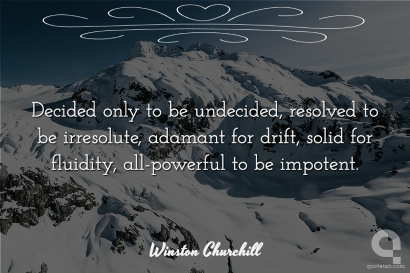Decided only to be undecided, resolved to be irresolute, adamant for drift, solid for fluidity, all-powerful to be impotent.