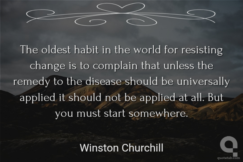 The oldest habit in the world for resisting change is to complain that unless the remedy to the disease should be universally applied it should not be applied at all. But you must start somewhere.