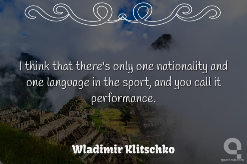 I think that there's only one nationality and one language in the sport, and you call it performance.