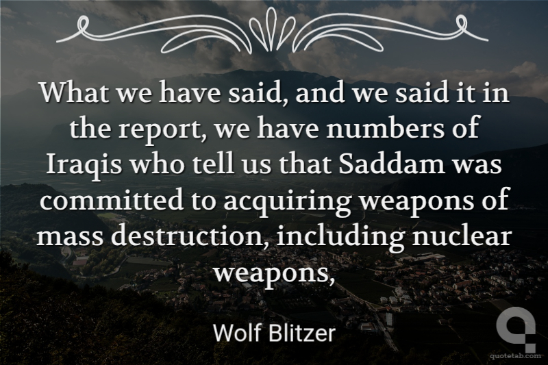 What we have said, and we said it in the report, we have numbers of Iraqis who tell us that Saddam was committed to acquiring weapons of mass destruction, including nuclear weapons,
